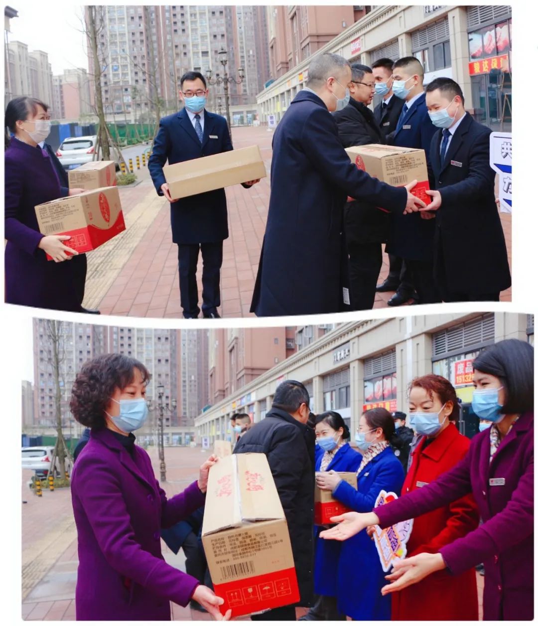 2020年12月24日,郫都区郫筒街道[中铁·奥维尔]2.3期连续14天内无新增本地确诊病例,由中风险地区调整为低风险地区,其他区域风险等级不变……在得知小区解封的第一时间,公司职能总部领导与企业工会委员会怀着急切的心情,带着一大批暖心物品,前往[中铁·奥维尔]2、3期一线为逆行的一线人员加油打气!企业总经理刘川先生对奥维尔抗疫团队关切的说道:“奥维尔团队是一支非常优秀的队伍。从郫县疫情爆发,到项目发现确诊病例,每一位家人都在自己的岗位上持续高强度作战,在物业服务中心一住就是近20天,不能回家与家人团聚,甚至还有许许多多的员工主动请缨前来……在这里我们代表公司向大家道一句感谢与辛苦了!希望大家继续将优秀的团队精神带到持续的防疫作战中不要松懈,也带到日常的对客服务里,为业主创造更好的家园。”