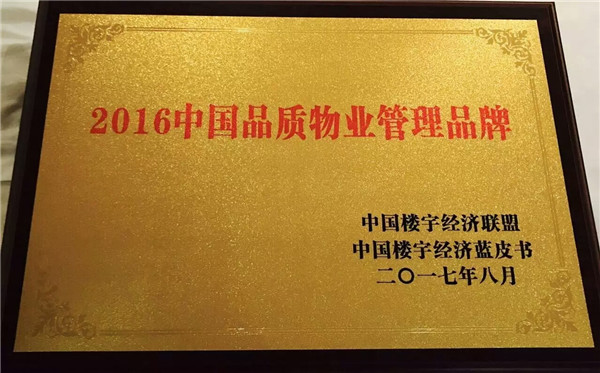 荣获“2016中国品质物业管理品牌"称号