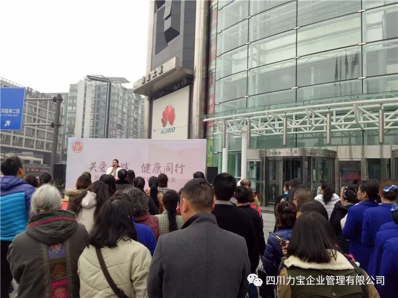 “关爱健康,关心生命,善待自己”已经成为当今社会人们最关注的事情之一。为了把健康的生活方式和对女性的关爱深入传播到千家万户,由跳伞塔街道妇联主办,武侯区小鲜妈妇女儿童服务中心承办,四川力宝企业管理有限公司协办的“关爱女性,健康同行”公益健康普查活动于11月28日在[力宝大厦]举行。