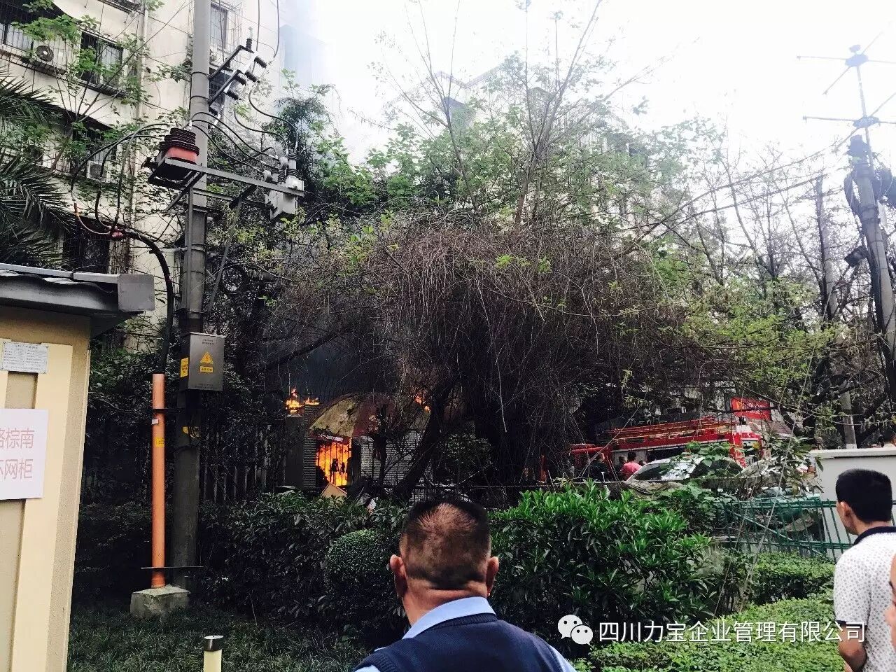 与此同时,警戒组迅速对棕南正街两头进行全面警戒,禁止无关车辆进入,并劝离围观人群;第一时间在[力宝大厦]业户微信群里对此事件向大厦各入驻企业进行了告知,以免造成惊慌,并提醒各入驻企业关闭窗户,避免烟雾和粉尘进入户内。 在我公司消防安全员、消防官兵、街道办工作人员的共同努力下,火势得以迅速控制和扑灭,保证了紧邻的居民楼和变压设备安全,及时遏制了一场重大事故的发生……
