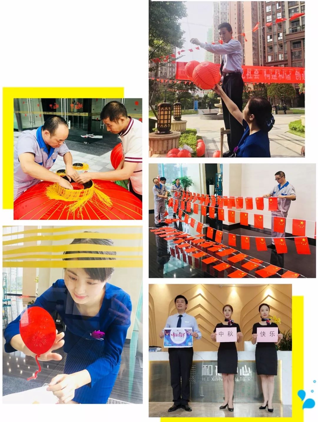 悬上灯笼、贴上窗花、挂上红旗……双节将至,为了营造温暖的节日气氛,我们在所管理的各个写字楼与园区内,都布满了喜庆的装饰,洋溢起中秋的幸福~
