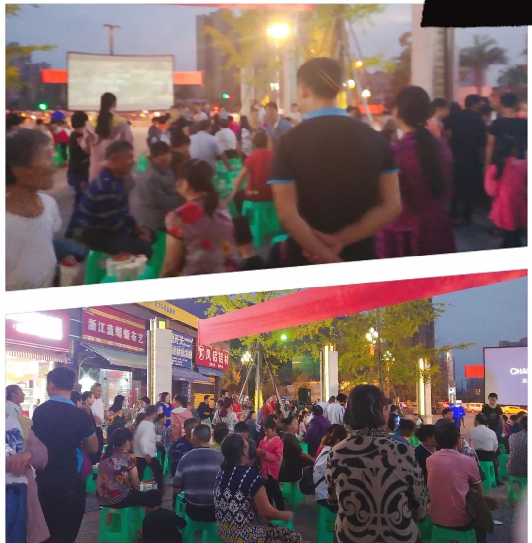 看着电影、品着月饼、吃着糕点……一场坝坝电影,让街坊邻居团圆在一起,大伙儿们似乎回到了久远的儿童时光,其乐融融!