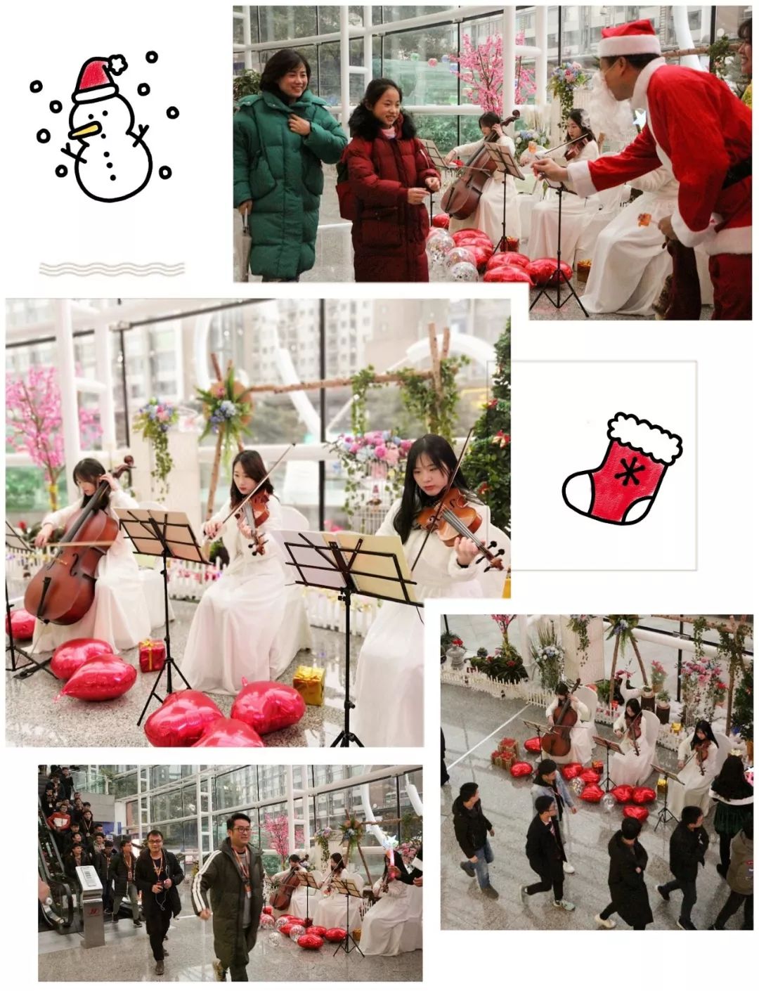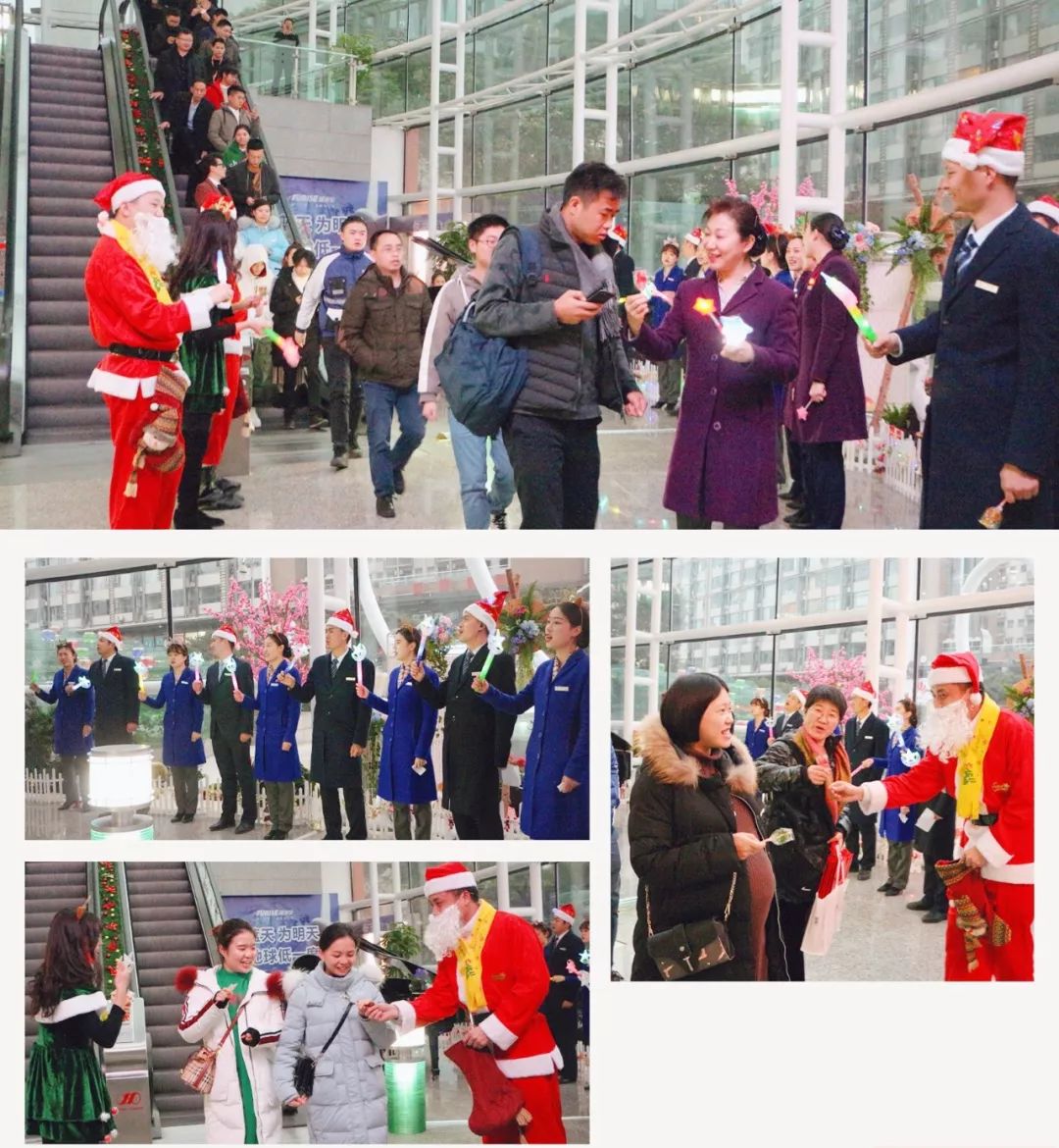 我看见忙碌的上班族们踏着轻快的钢琴声上班与下班;我看见装备比我还齐全的力宝小哥哥小姐姐提着礼物和糖果,挥舞着荧光棒列队唱歌迎接;还有专业的乐团演奏;虽然还没有正式开始,但这架势的确已经比我还大了。 “力宝人”居然起得比业户还要早 赶在上班时去派发惊喜/ “力宝人”组成圣诞唱诗班 为下班的业户奉上歌声与祝福/ 还有西洋乐队现场演奏,看上去好高大上/