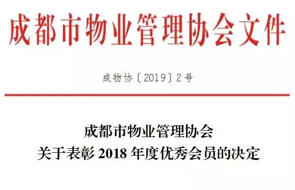 成都市物业管理协会"2018年度优秀会员"