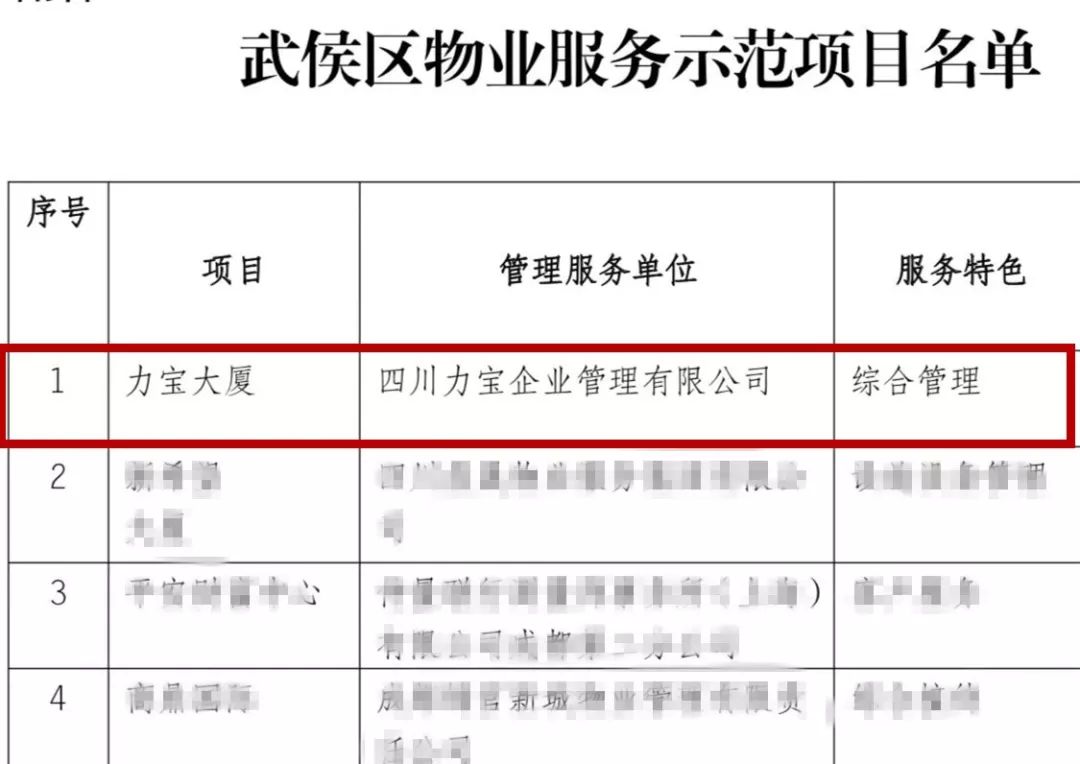 “武侯区物业服务示范项目”