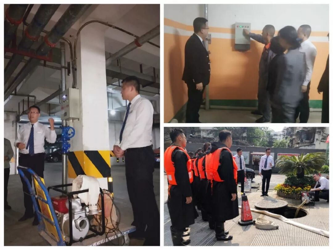 未雨绸缪先练兵,我们已准备就绪,时刻面对风雨!——四川力宝企业管理有限公司2019年防汛练兵战纪如下↓↓↓ 防汛战纪① 居安思危,宣贯学习 组织全员开展防汛工作会议,全员学习《防汛应急预案》,对各重点区域进行排查。密切关注天气变化,加强监测预警,绷紧防汛安全弦。 防汛战纪② 未雨绸缪,实操讲解 检查各设施设备,并再次强调其操作流程,让员工全面掌握防汛抢险的基本知识和技能,确保在紧急突发的情况下能迅速找准位置,有效的采取措施。 防汛战纪③ 以练为战,牢筑防线 (暴雨模拟) 强降雨!强降雨!气象局紧急发布暴雨橙色预警!我公司各项目迅速启动《防汛应急预案》,上下联动,科学调度全面进入备战状态! 排兵布阵,奔赴一线,精诚团结、毫不退缩、我们是勇往直前的“力宝战士”,为业户筑起一道牢固的安全防线! 险情一:暴雨持续肆虐,雨水超过街道排水上限,从街面涌出,停放在车库内的机动车面临被水淹的危险。 ▲迅速开启排水设施