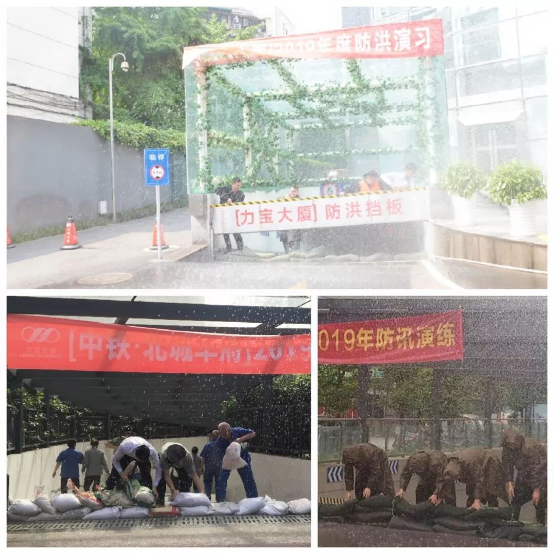 ▲紧急抢险 ,搬运、安装防洪挡板 有序的垒砌防洪沙袋,全力阻挡洪水侵袭 ▲对积水区域进行及时清理 暴风,我们来挡;骤雨,我们来扛! 演习如实战,面对这场突如其来的“暴雨”,“力宝人”用实际行动保障了业户的生命和财产安全!我们时刻准备着,迎接一切恶劣的天气与突发状况,筑起牢固的汛期安全防线! 力宝,用实际行动 保卫业户舒适办公环境与美丽家园 ↓↓↓ 夏季降雨天气安全提示 近日雨季来临,为避免出现雨季的安全事故,“力宝君”特制定雨季安全注意事项,请您关注: 1、出门时请关好家中和办公场所的门窗,关闭好电器,最好切断电源。 2、请将阳台摆放的物品和室外晾晒的衣物及时收回,以免被风吹落砸伤他人。 3、请注意电器使用安全,切断危险地带的室内电源,雷雨时尽量不使用电视机、室内热水器、电脑等电器设备,并拔除电源插头。 4、请加强自身防范,出门带伞、雨披等。做好防风、防雨保护措施。 5、下雨天气出行应注意观察,绕开有水流漩涡的地方。防止跌入地坑等危险地带。切勿在深水区逗留。 6、尽量不要靠围墙、建筑物行走,防止建筑倒塌、高空坠物等危险。 7、雨天驾车时视线容易模糊,放慢车速,尽量与前车保持一定距离,不要跟车太近,更不要频繁超车。 8、通过积水路段时,如果水位达到保险杠或轮胎的三分之二处时,则不宜冒险涉水应尽量绕行,勿强行通过。 9、如果车辆在涉水过程中不慎熄火,不可重新启动发动机,应离车,并在安全地带等待救援。
